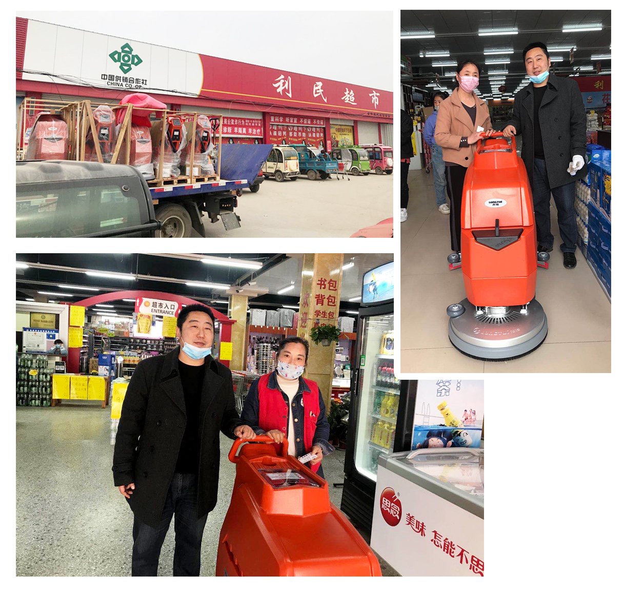 3、超市商场等场所客流量较大,地面需要经常清洗,尤其是雨雪天气,地面需要及时清洁,否则容易带来安全隐患,使用手推式洗地机不但清洁快速,而且能吸干地面,避免二次污染和危险事件的发生。