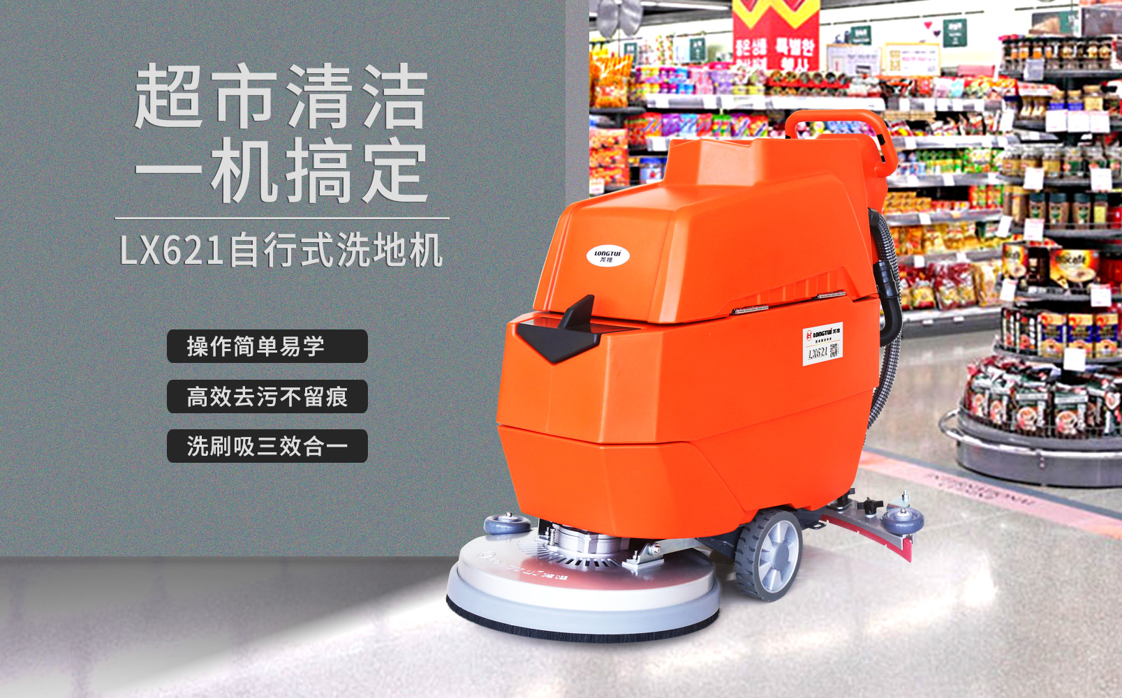 超市是一个商业场所,对环境清洁度要求较高。目前超市地面清洗大多数使用全自动洗地机,它的高效率和一尘不留的清洗模式,是替代人工清洁的完美选择。