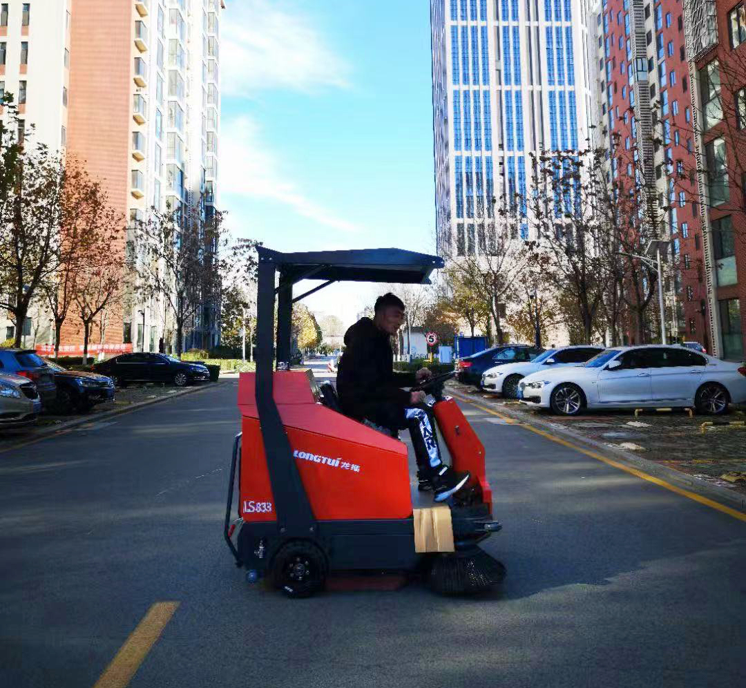 龙推LS833驾驶式扫地机,每小时清洁效率在8000平米左右,可以代替6-8位以上的清扫人员工作,解决了物业公司招工难的问题。同时节省了时间,节约人力,最终节省了小区的保洁费用开支。
