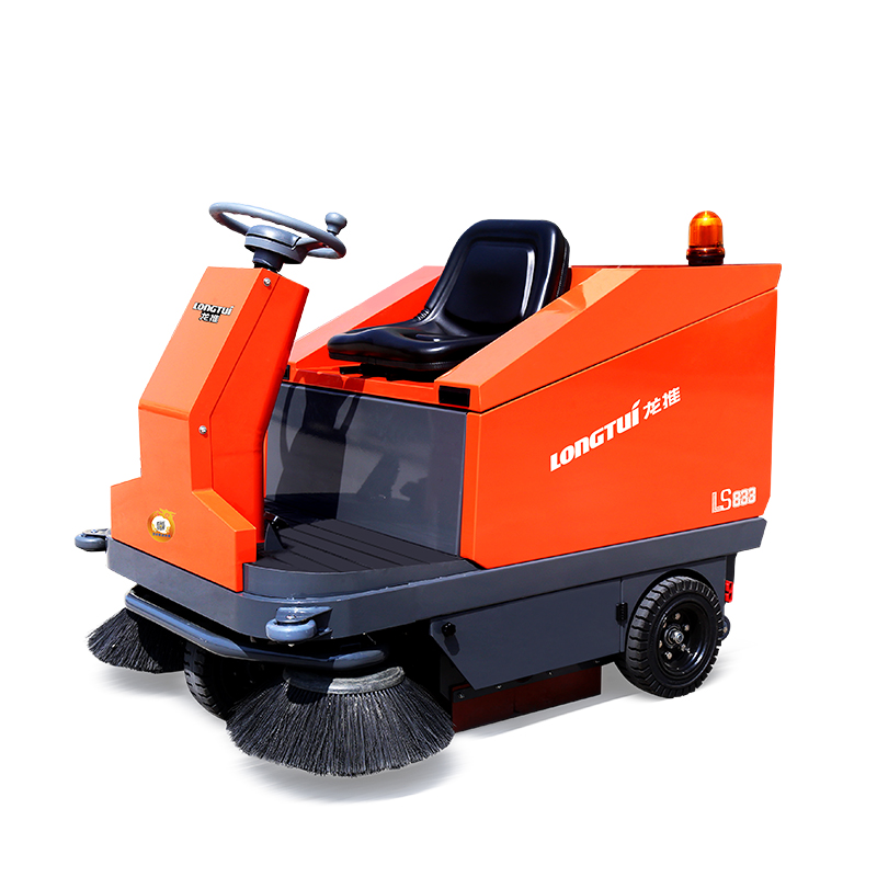 面积较大空旷区域,可使用龙推LS833驾驶式扫地车,速度快、容量大、续航久、清洁效率高。